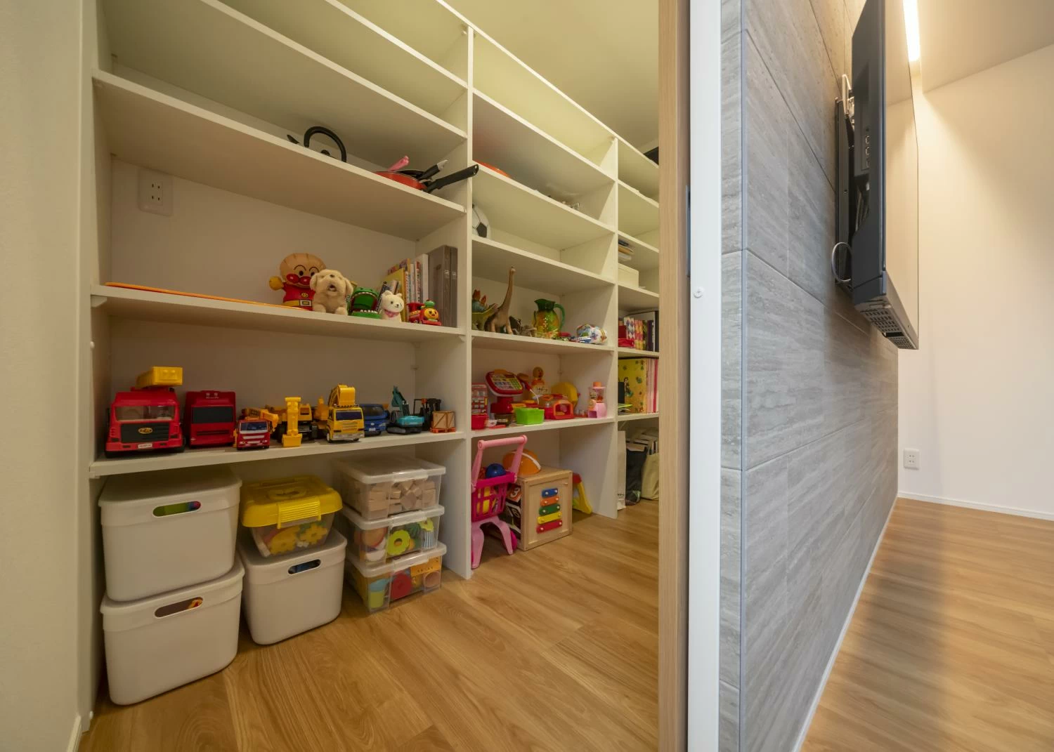 奥様:店と部屋の間に収納を作ってもらいました。収納スペースに防音効果があり、普段は全く音がしませんね。