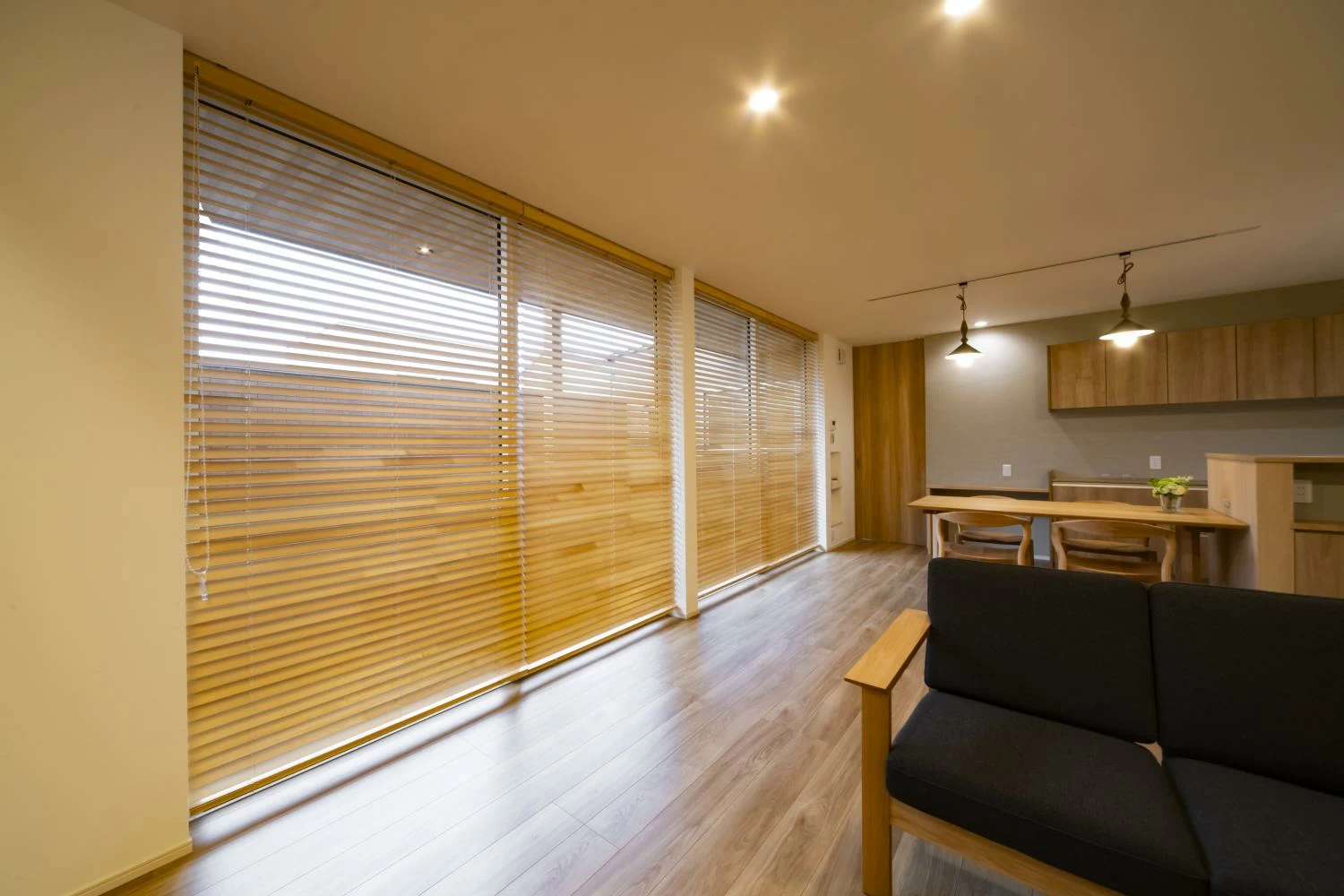 こちらのお宅では横型のウッドブラインドを使用しました。ウッドブラインドは室内を印象的に彩りながらも、ナチュラルにも優雅にも演出してくれます。