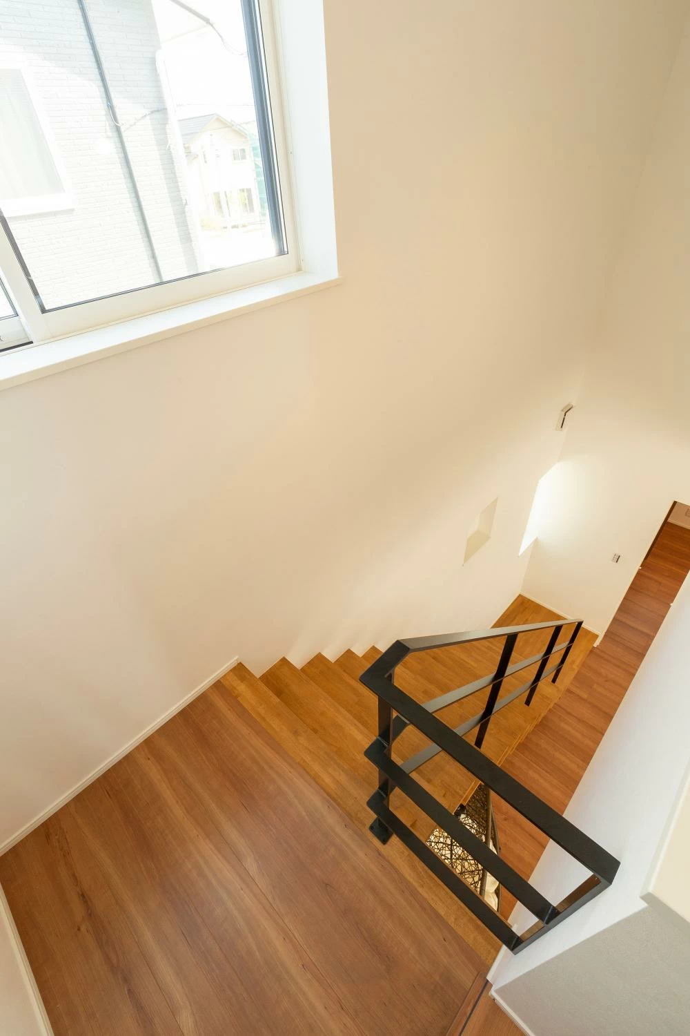 シンプルなデザインのお家のちょっとしたアクセントとなるようにと提案したのがこちらの階段。