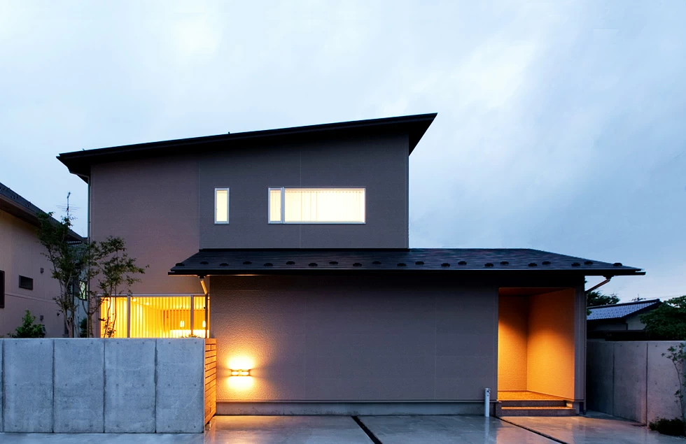 外観色は和調の落ち着いた色合いの外壁を使用し、一部分は目隠しとしてアルミ格子を取り入れたりと「異素材の組み合わせ」で遊んでいるのも特徴です。