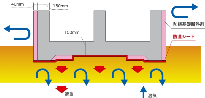 さらに工事の際には基礎断熱材と一体化するよう施工するため、精度の高い仕上がりになります。